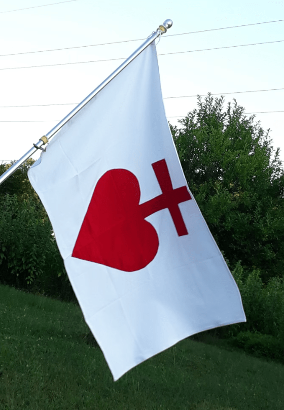Symbolism is powerful. The symbol of the burning Sacred Heart of Jesus depicted on the Sacred Heart flag represents the burning love Jesus has for every person.